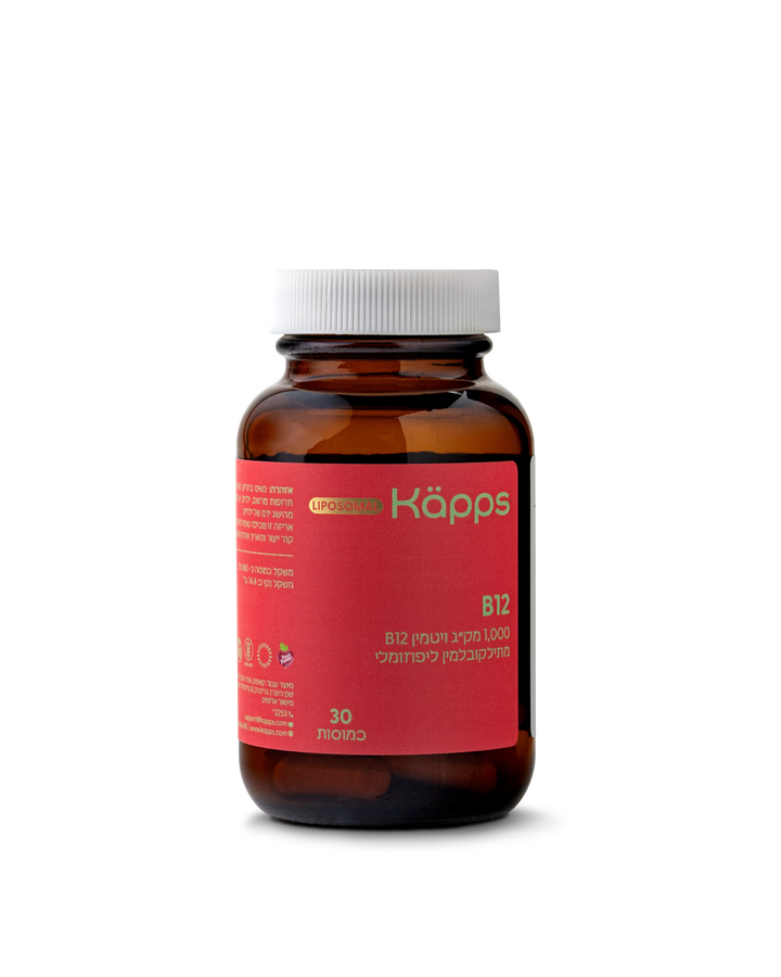 תוסף תזונה ויטמין B12 בצורת מתילקובלמין (נגזרת פעילה) בטכנולוגיה ליפוזומלית מתקדמת לספיגה מיטבית. תורם לחילוף חומרים תקין להפקת אנרגיה, תקינות מערכת העצבים, היווצרות תקינה של תאי דם אדומים, תפקוד תקין של מערכת החיסון, להפחתת עייפות ותשישות ולתפקוד בחלוקת התא. מתאים לצמחונים וטבעונים.
